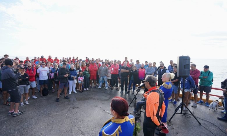 Hacia el cierre, los y las guardavidas culminaron la jornada con el tradicional salto al mar desde el Muelle, gesto que simboliza el compromiso y la vocación de servicio que desempeñan cada temporada.