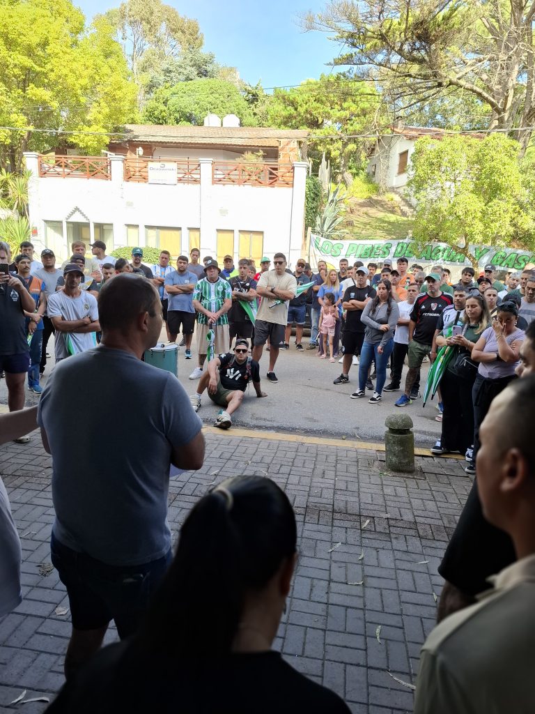 Con el secretario general de la CGT- Regional Tuyu y dirigente del gremio de Camioneros, Damián Comas se realizó un acto con conferencia de prensa incluida en la puerta de la oficina que tiene la empresa Santa Elena en Paseo 108 y Av. 4