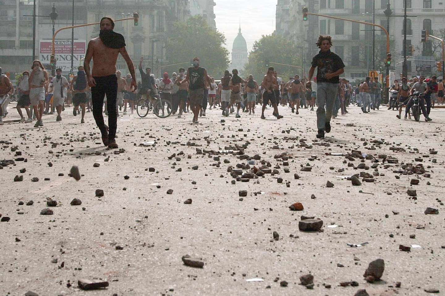 Los incidentes fueron creciendo y se extendieron a lo largo de la avenida de mayo hasta la 9 de Julio donde grupos de militantes de izquierda se enfrentaban con las fuerzas de seguridad. Y lo mismo se replicó en las principales ciudades del país.