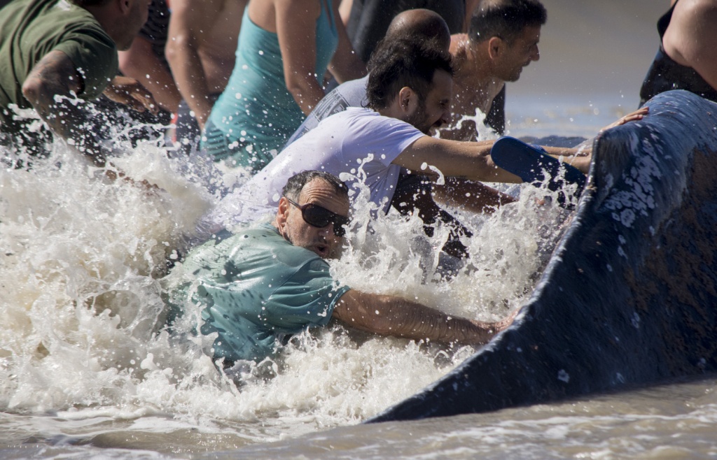 Hay una motivación interna en algunos seres humanos que asoma cuando aparecen estos animales enormes e inofensivos en peligro de muerte. Y una ballena de este peso y de esta longitud, a pesar de que es una cría, queda atrapada en la costa se muere si no la ayudan a buscar aguas más profundas entonces el esfuerzo es doble.