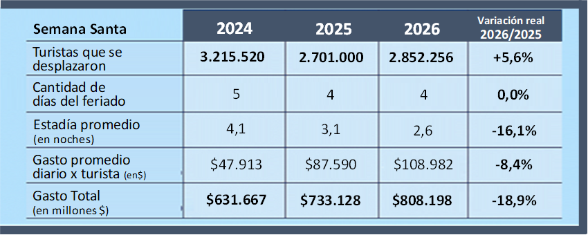La cantidad de turistas durante la Semana Santa 2026 creció un 5,6% frente a la misma fecha del año anterior, pero se volvieron a priorizar escapadas cortas y cercanas, en un contexto donde el costo del transporte y la situación económica influyeron en las decisiones de viaje.